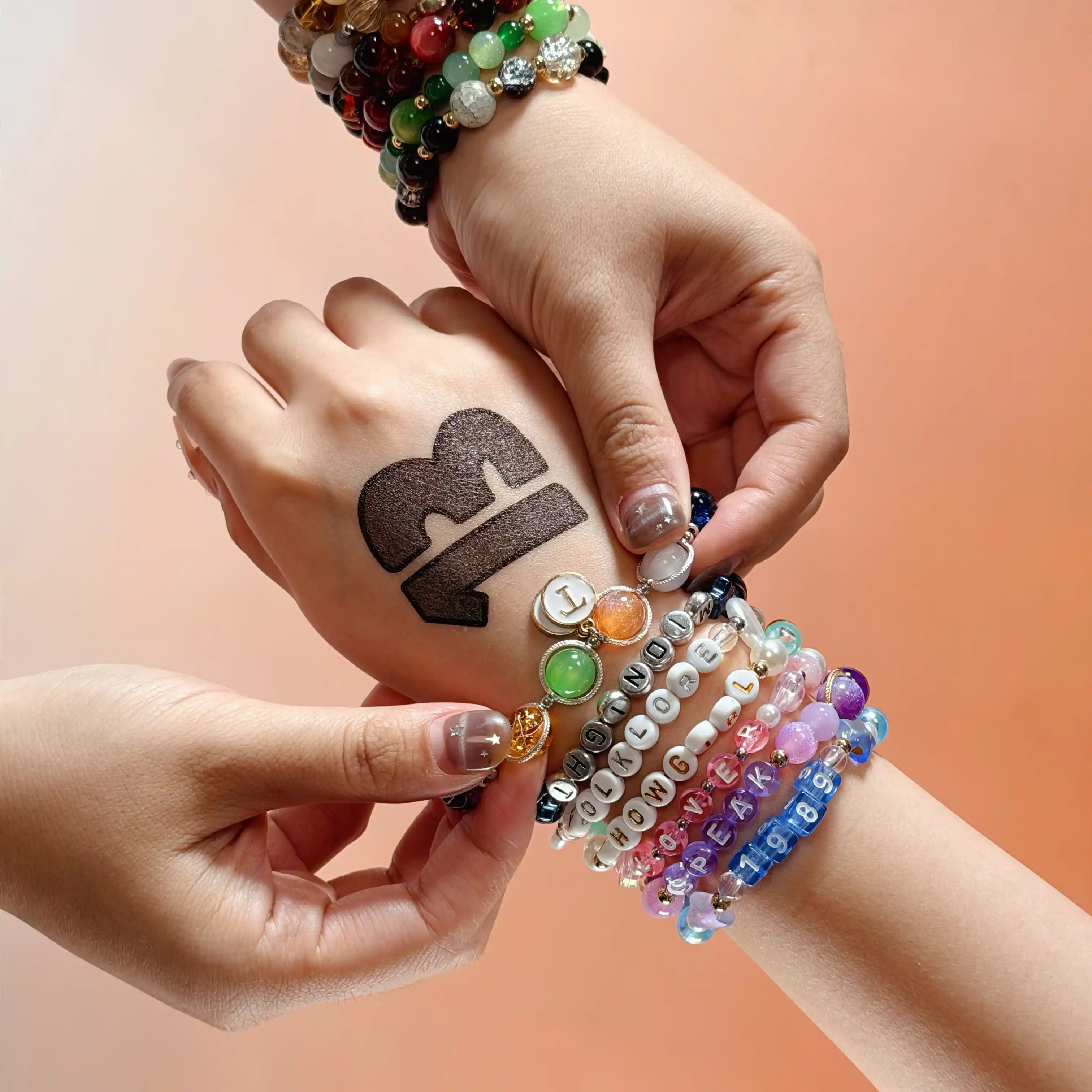 Design Inspiration Inspired by Taylor Swift’s latest visuals and the glamorous spirit of a showgirl, this bracelet blends playful elegance with performance-ready flair — through bold colors, intricate beading, and eye-catching charms. Product Highlights 🎭 A bold tribute to the confidence and charm of...