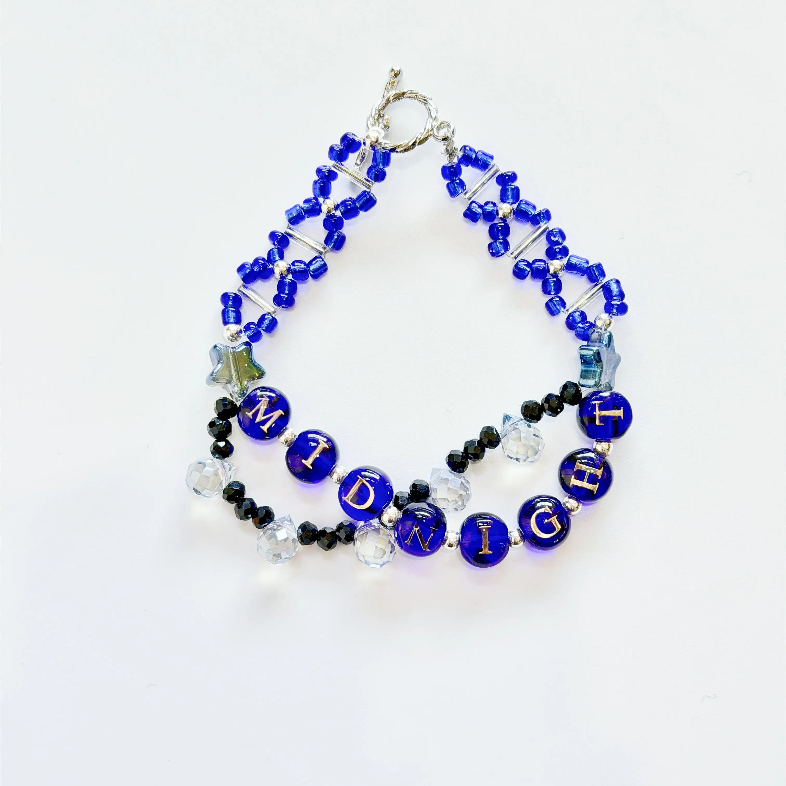 Inspired by Taylor Swift’s Midnights, this bracelet captures the mood of late-night thoughts — deep, glittering, and quietly intense. Like 13 sleepless nights distilled into light and shadow, it’s a piece that reflects inner confession and cosmic wonder.