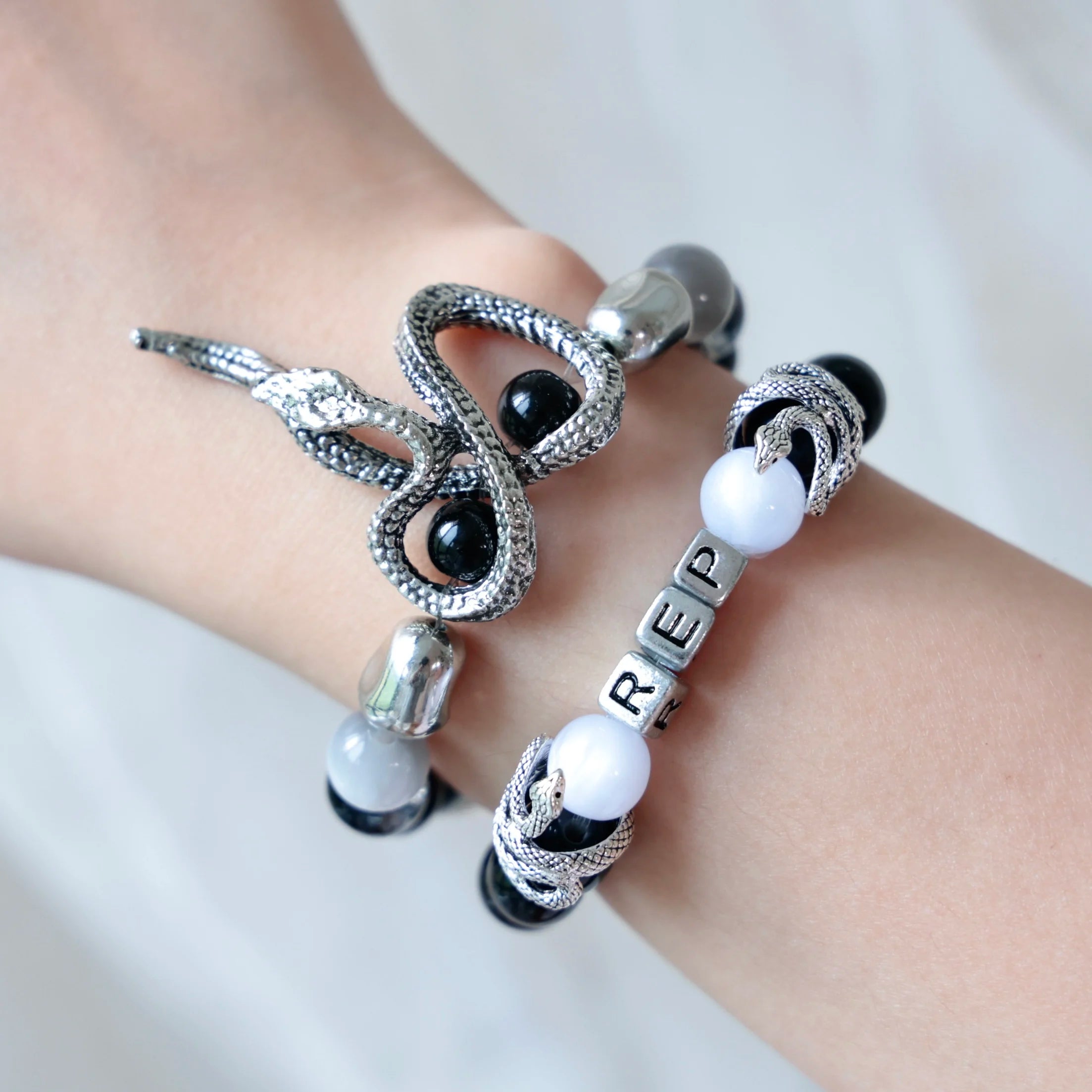 Inspired by Reputation, this bracelet channels the fierce power of reclaiming your identity after being misunderstood. Like Taylor, it speaks to quiet strength — no longer crying in the corner, but rising like a phoenix. A bold statement of reinvention, strength, and unapologetic confidence.